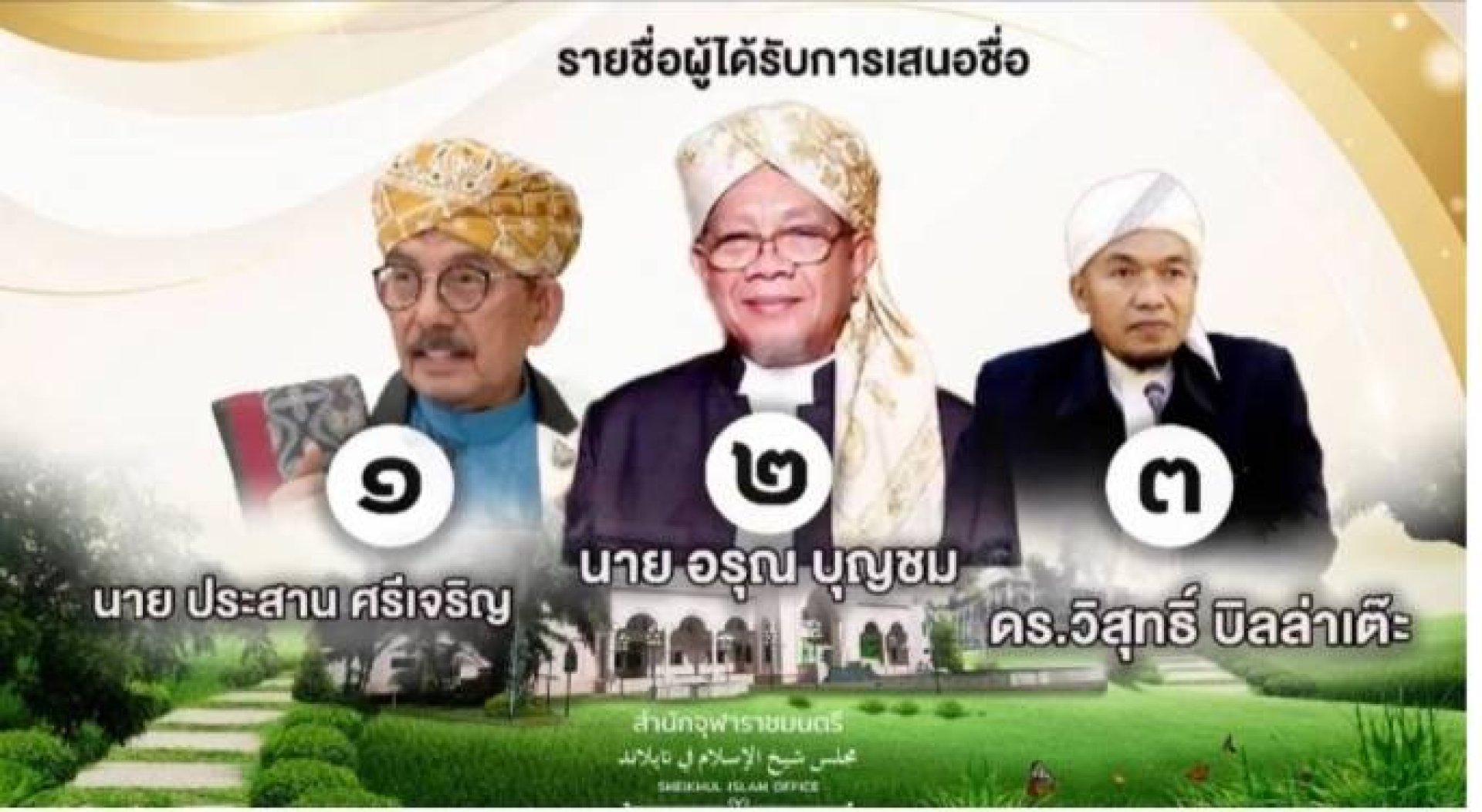 การดำเนินเพื่อสรรหา จุฬาราชมนตรี ครั้งนี้ มีผู้ได้รับการเสนอชื่อ ผู้ที่เหมาะสมจะ ดำรงตำแหน่ง จุฬาราชมนตรี มีด้วยกัน 3ท่าน ซึ่งมี 1 นายประสาน ศรีเจริญ ตำแหน่งรองประธานผู้ทรงคุณวุฒิจุฬาราชมนตรี 2 นายอรุณ บุญชม ตำแหน่งประธานกรรมการอิสลามประจำกรุงเทพมหานคร 3 นายวิสุทธิ์ บินล่าเต๊ะ ตำแหน่งอิหม่าม ประจำ มัสยิดบ้านเหนือ จังหวัดสงขลา ผลจากการคัดสรรเลือกตั้ง ปรากฏ ผู้ที่ได้รับการเลือกให้ ดำรงตำแหน่งจุฬาราชมนตรี คนที่ 19 คือ นายอรุณ บุญชุม ซึ่งจะทำเรื่องเตรียมขึ้ยทูลเกล้าฯ เพื่อ โปรดเกล้าฯ ต่อไป