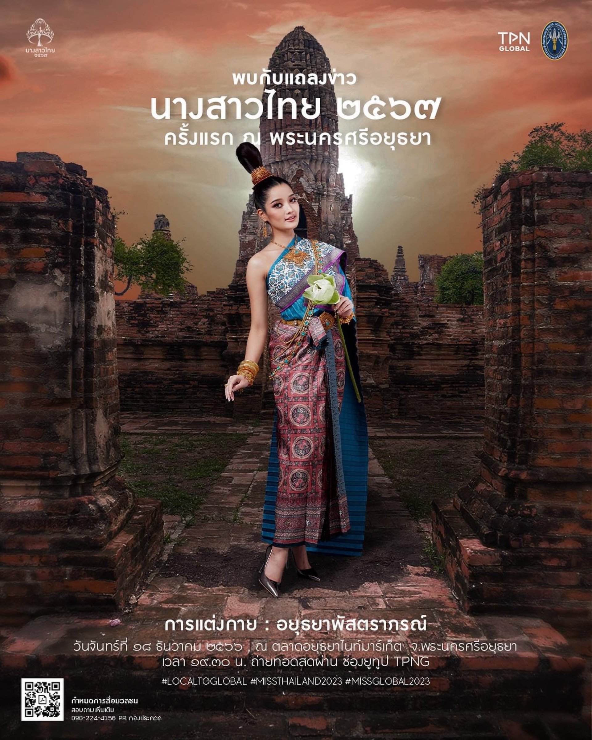 สมาคมนักเรียนเก่าวชิราวุธวิทยาลัย ร่วม บริษัท ทีพีเอ็น โกลบอล จำกัด จัดแถลงข่าว ประกวดนางสาวไทย ประจำปี 2567 ที่ตลาดไนท์ มาร์เก็ต อำเภอเมือง จังหวัดพระนครศรีอยุธยา ในวันจันทร์ที่ 18 ธันวาคม 2566 เริ่มลงทะเบียนหน้างาน ตั้งแต่ เวลา18.30 น และใน เวลาประมาณ 19.45 น.