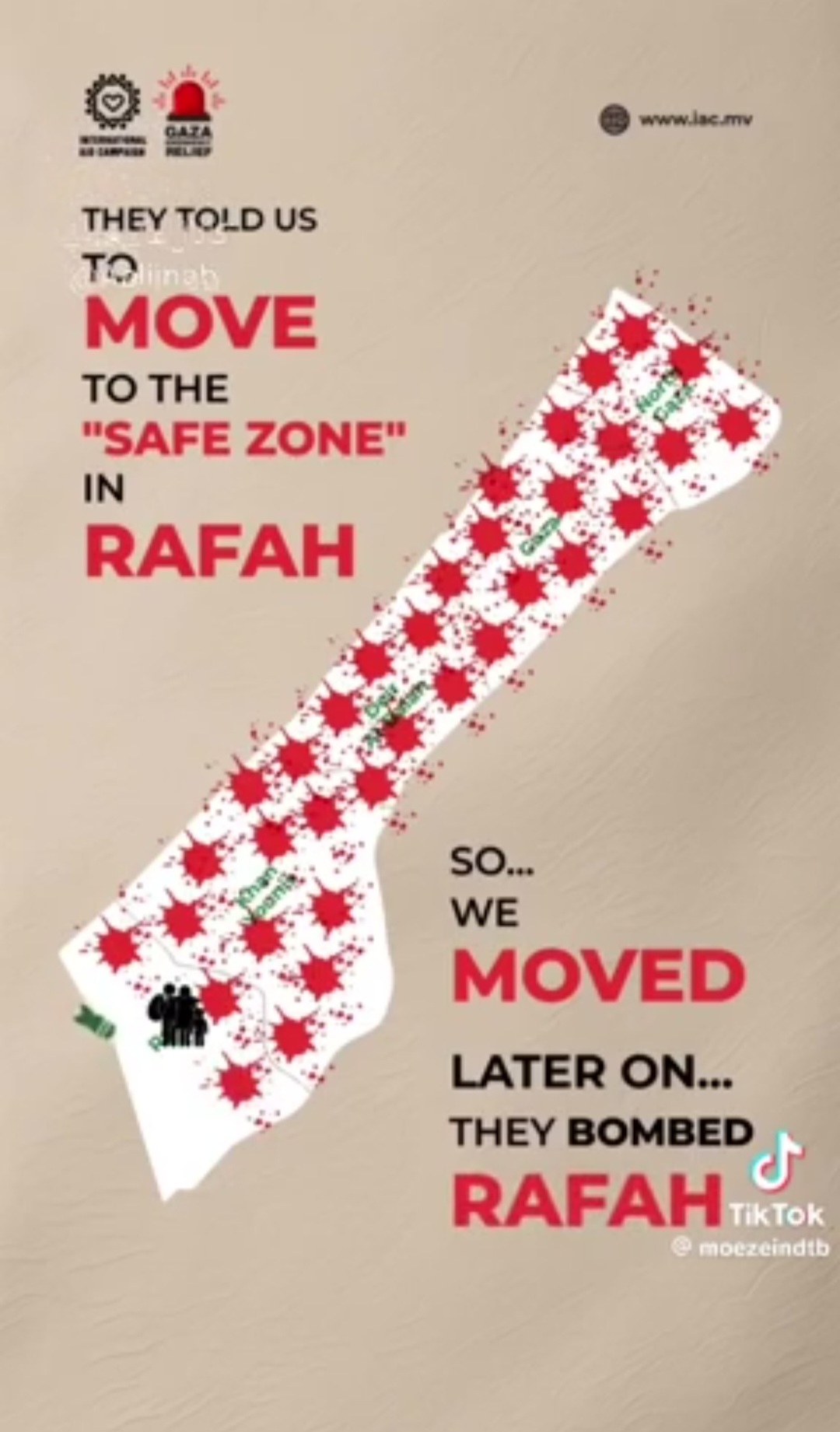 เห็นได้ว่าหลังจาก เริ่มการรุกรานของกองทัพระบอบไซออนิสต์ทางตอนเหนือ และ ใจกลางฉนวนกาซา ผู้ลี้ภัยชาวปาเลสไตน์ ก็ค่อยๆ อพยพไปทาง ตอนใต้ของ ฉนวนกาซา โดยเฉพาะที่ เมือง ของ ราฟาห์ ซึ่งเป็นเมืองสุดท้ายทางตอนใต้ ของ ฉนวนกาซา และ ที่นั่นพวกเขาก็ไม่ได้รับ การยกเว้นจากการ โจมตี อันป่าเถื่อน ของกองทัพ ไซออนิสต์
