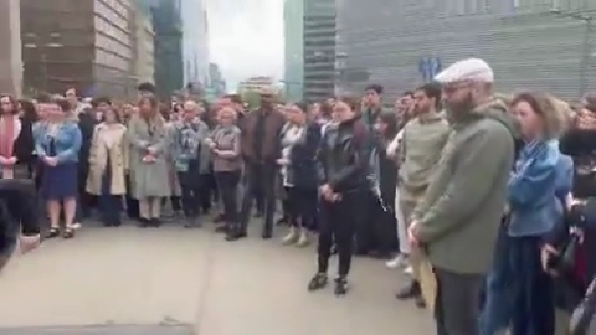 การชุมนุม ประท้วง ของพนักงาน สหภาพยุโรป 100 คน ออกมา ต่อต้านสงครามใน ฉนวนกาซา