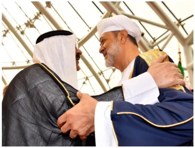 สุลต่านไฮธัมทักทายเจ้าหน้าที่อาวุโสของรัฐคูเวตหลายคน ในขณะที่